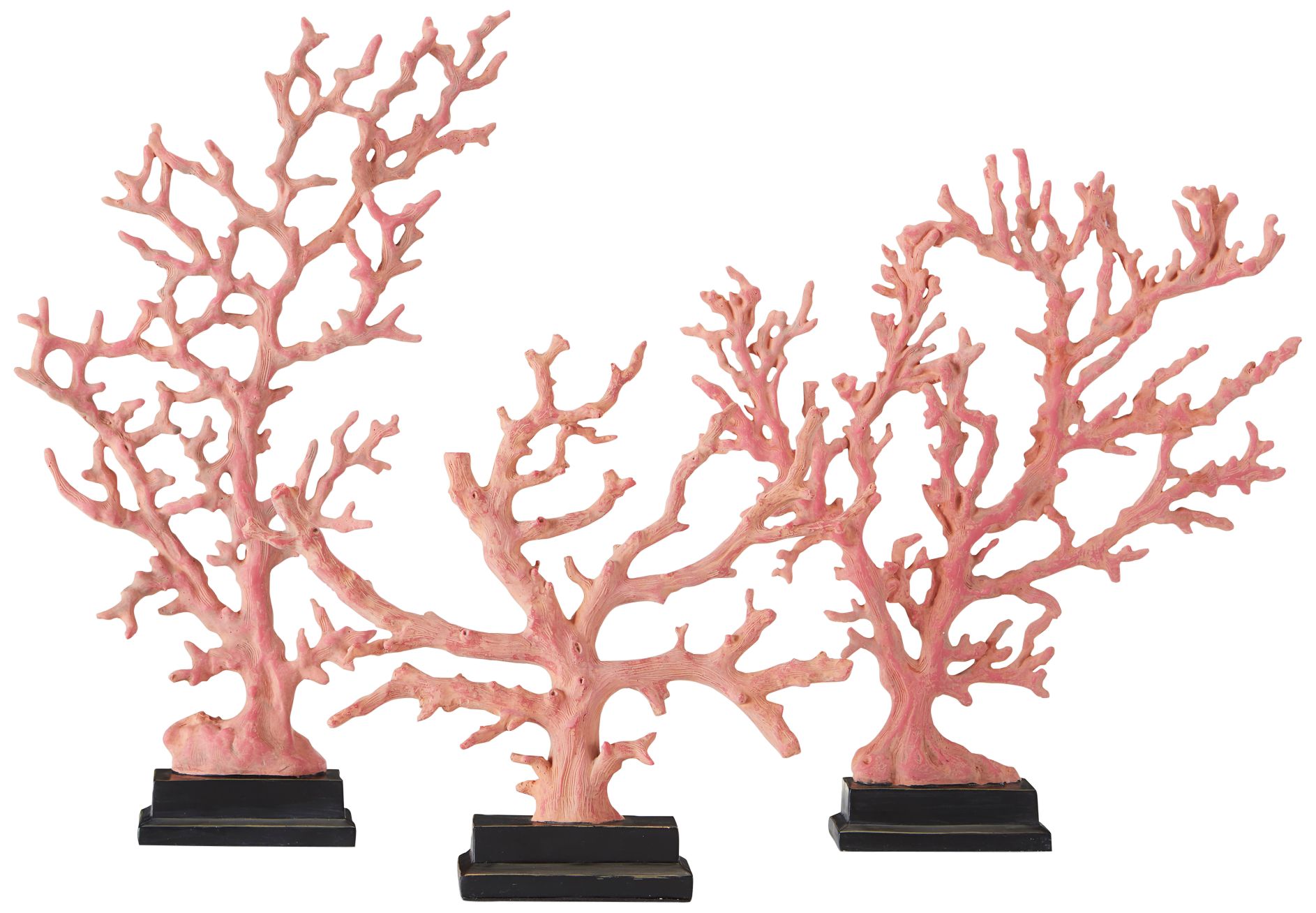Red Coral Branches 19 1/4" High Sculptures Set of 3