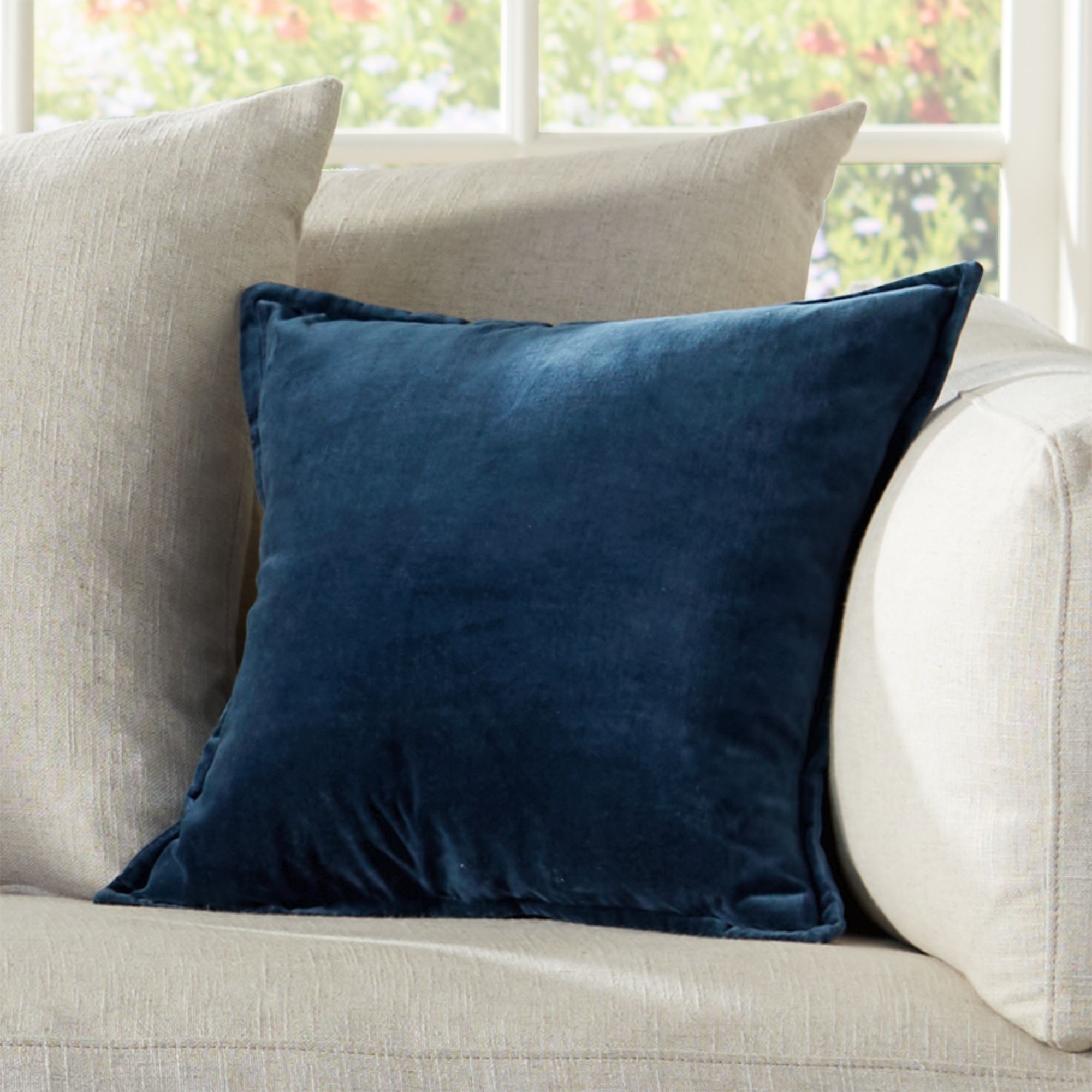 Surya Cotton Velvet Navy 20" Square Decorative Throw Pillow