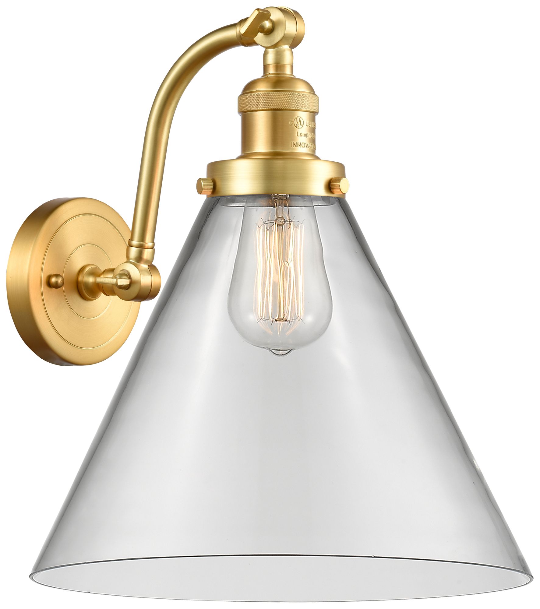 Cone 15" High Satin Gold and Clear Glass LED Wall Sconce