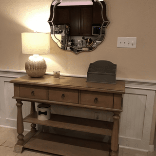 - Hand-applied distressed champagne finish with a warm gold and silver wash overlay. Because the finish is handcrafted, color may vary slightly. MDF frame.