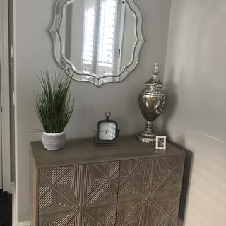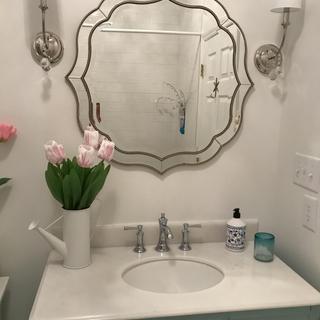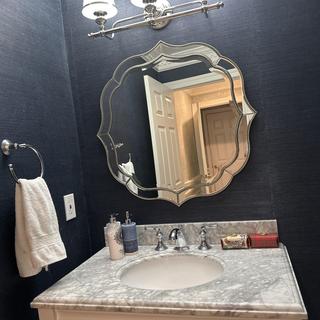 This scalloped edge round wall mirror can instantly upgrade the look of an ordinary wall and change up a space.