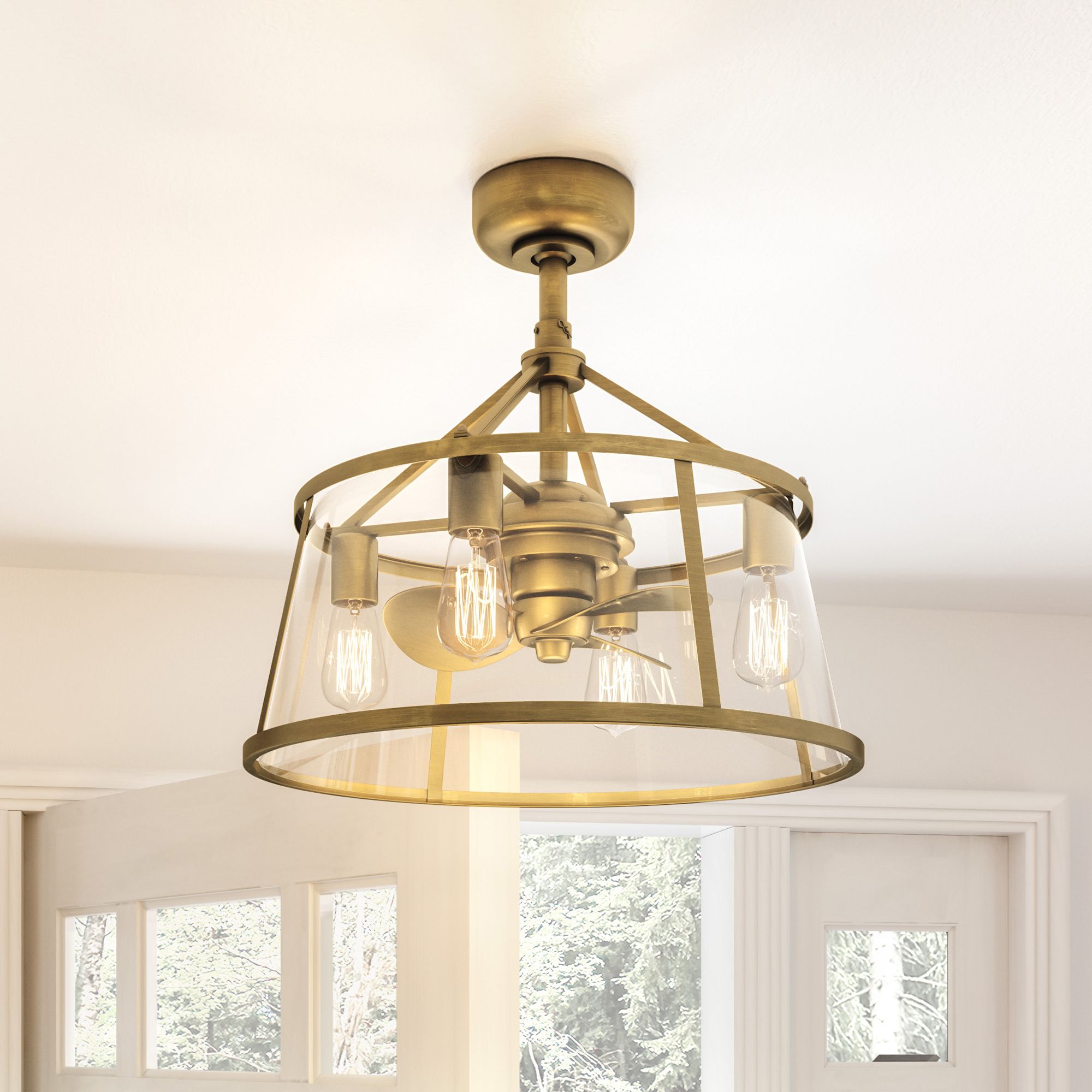 12" Quiozel Barlow Brass Fandelier LED Damp Ceiling Fan with Remote