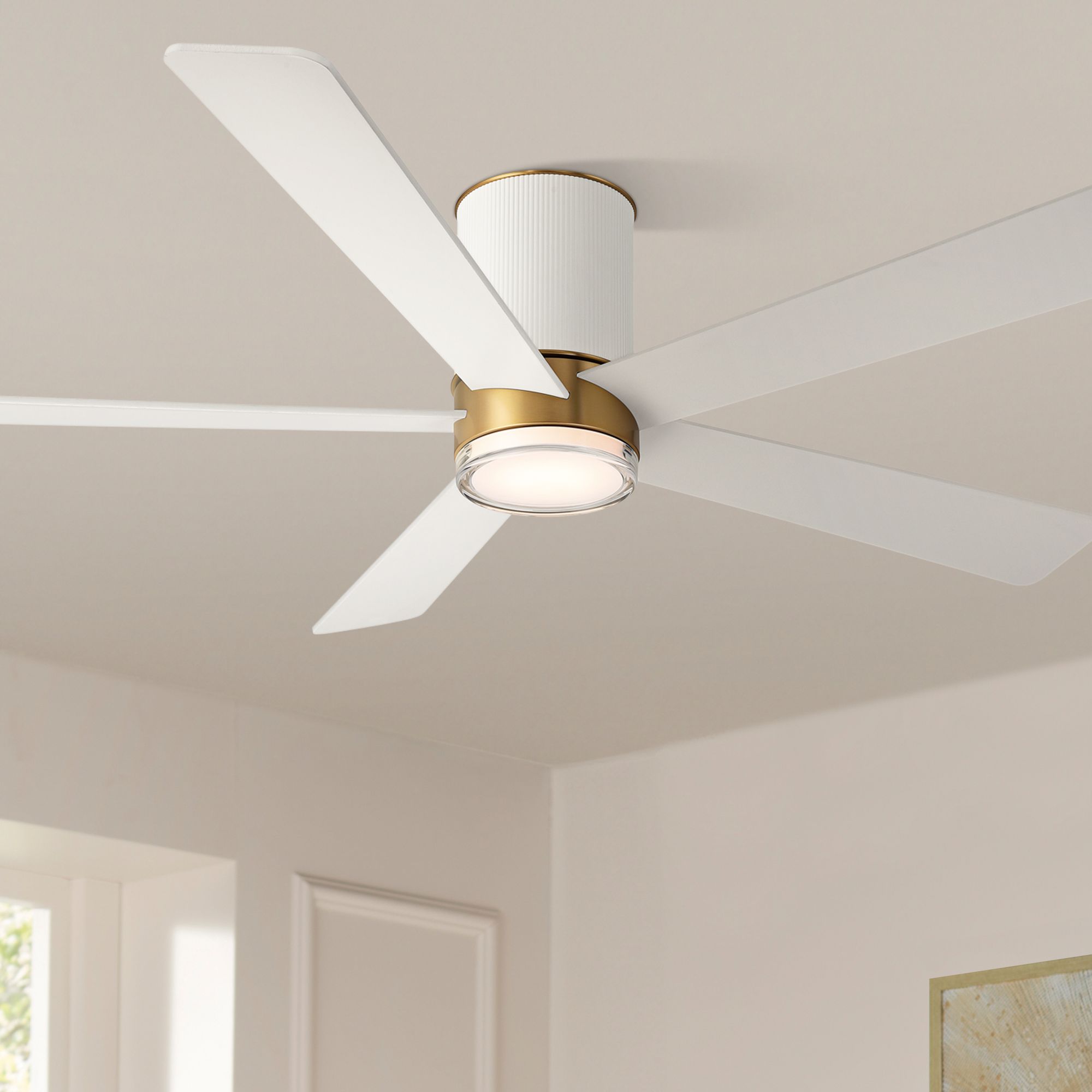 56" Casa Vieja Vex Matte White LED Hugger Ceiling Fan with Remote