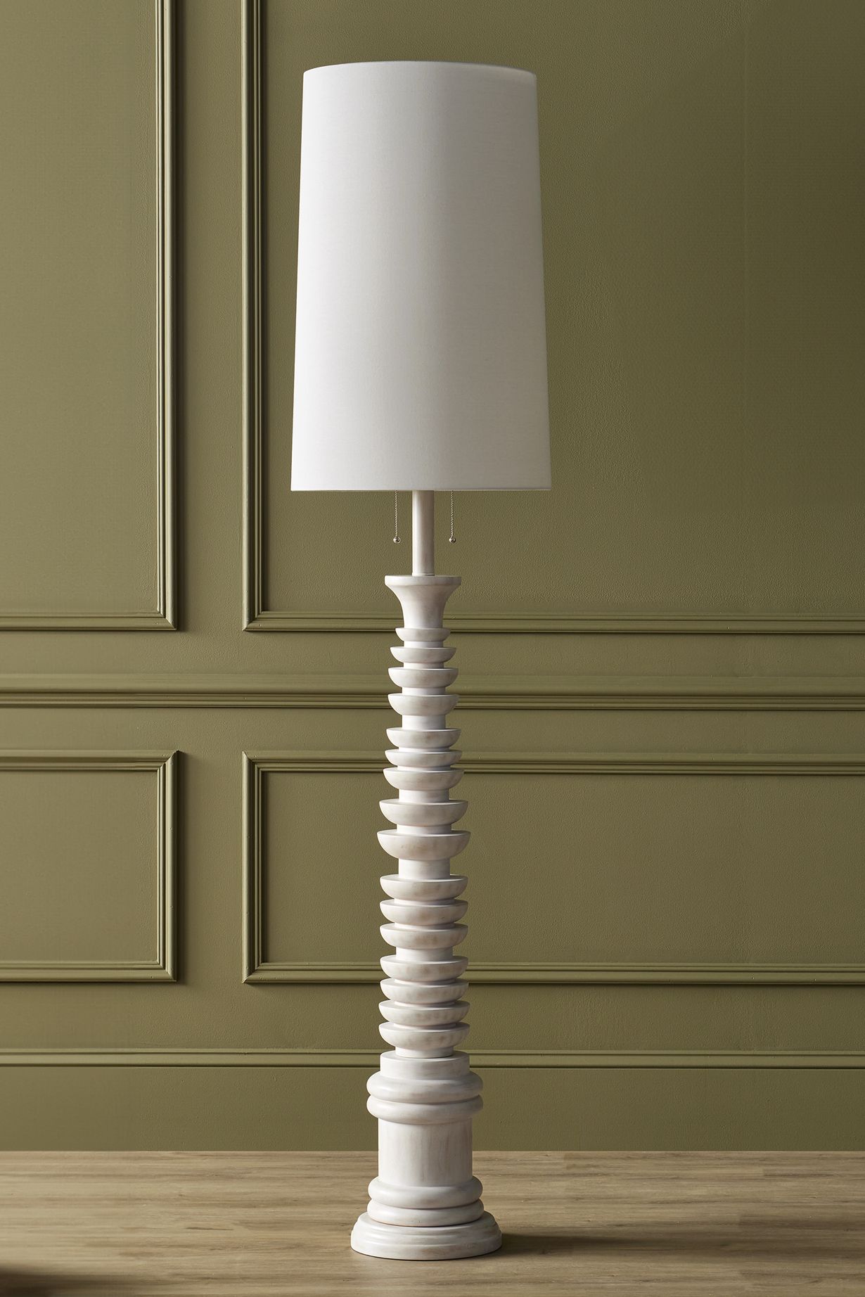 Currey & Company Malayan 80" High White Stacked Wood Floor Lamp