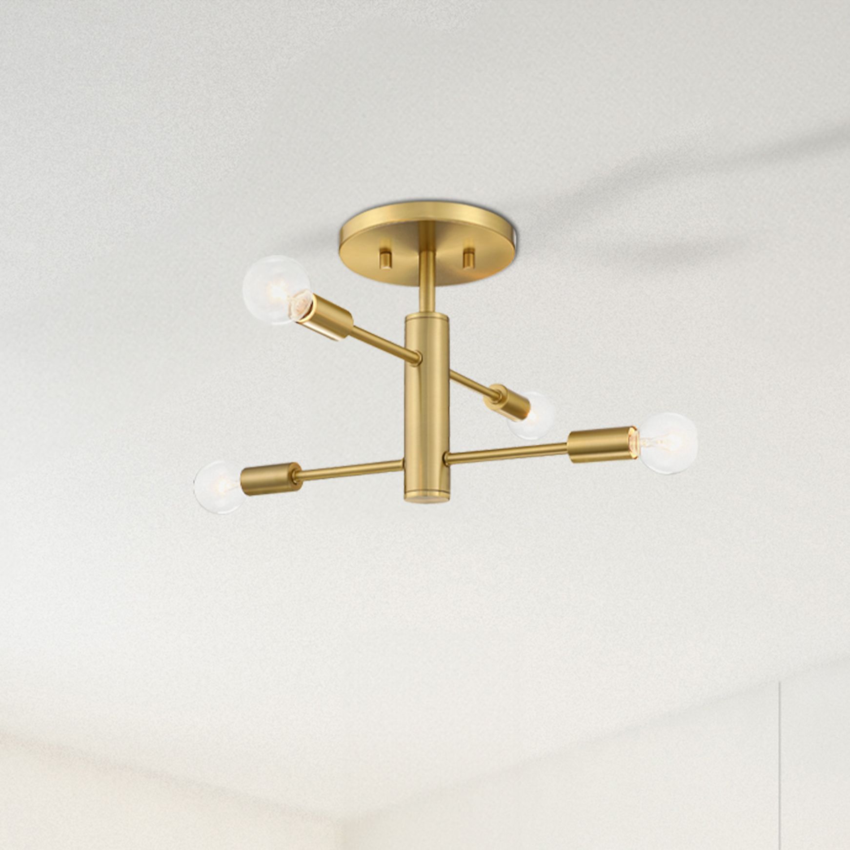 Arlo 14.25 in. 4-Light Brushed Gold Minimalist Semi Flush Mount