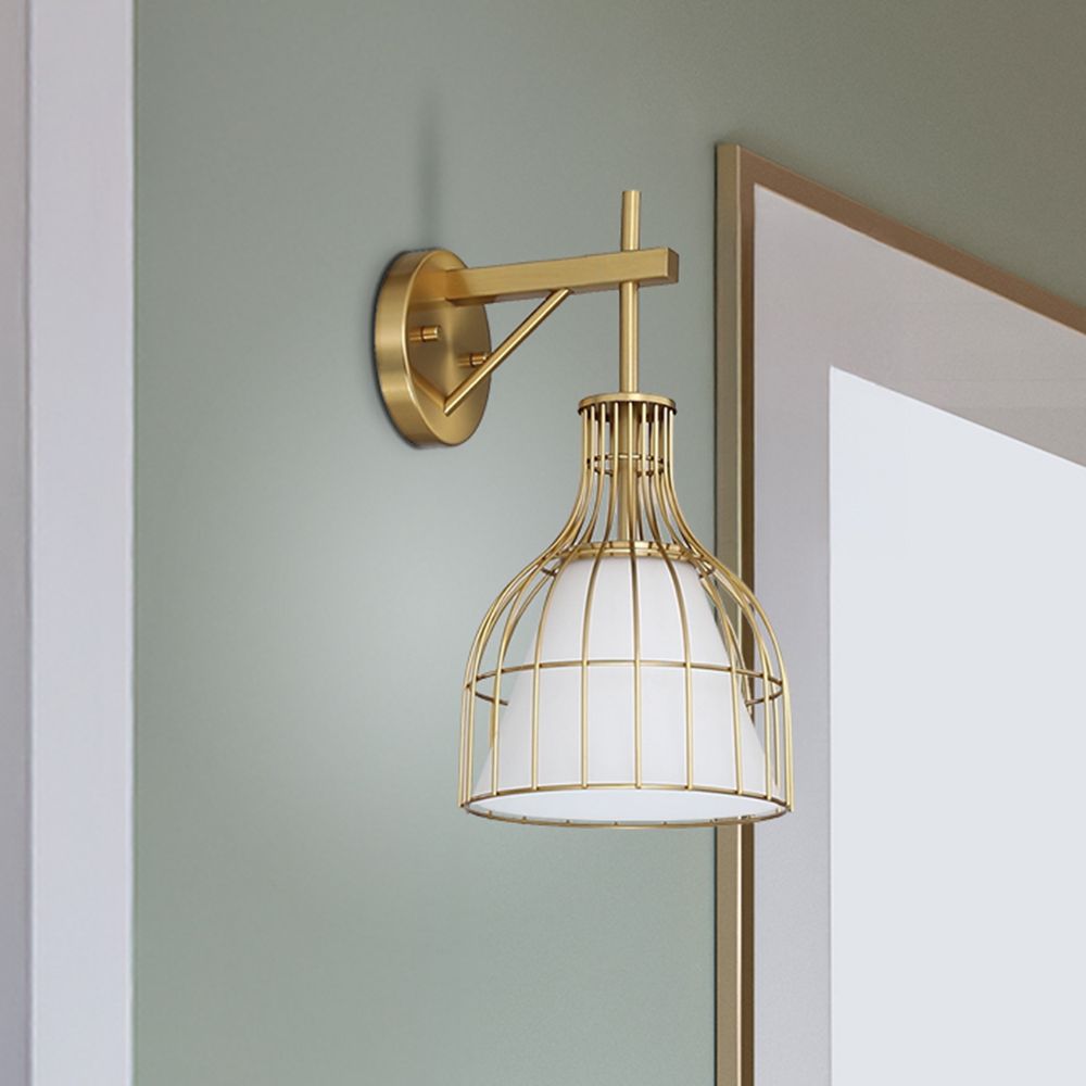 Evensong 8 in. 1-Light Brushed Gold Indoor Wall Sconce Light for Bathrooms