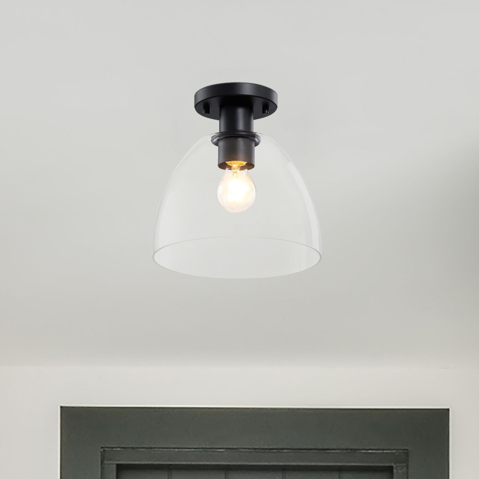 Skylar 10 in. Matte Black Transitional Semi-Flush Mount with Glass Shade