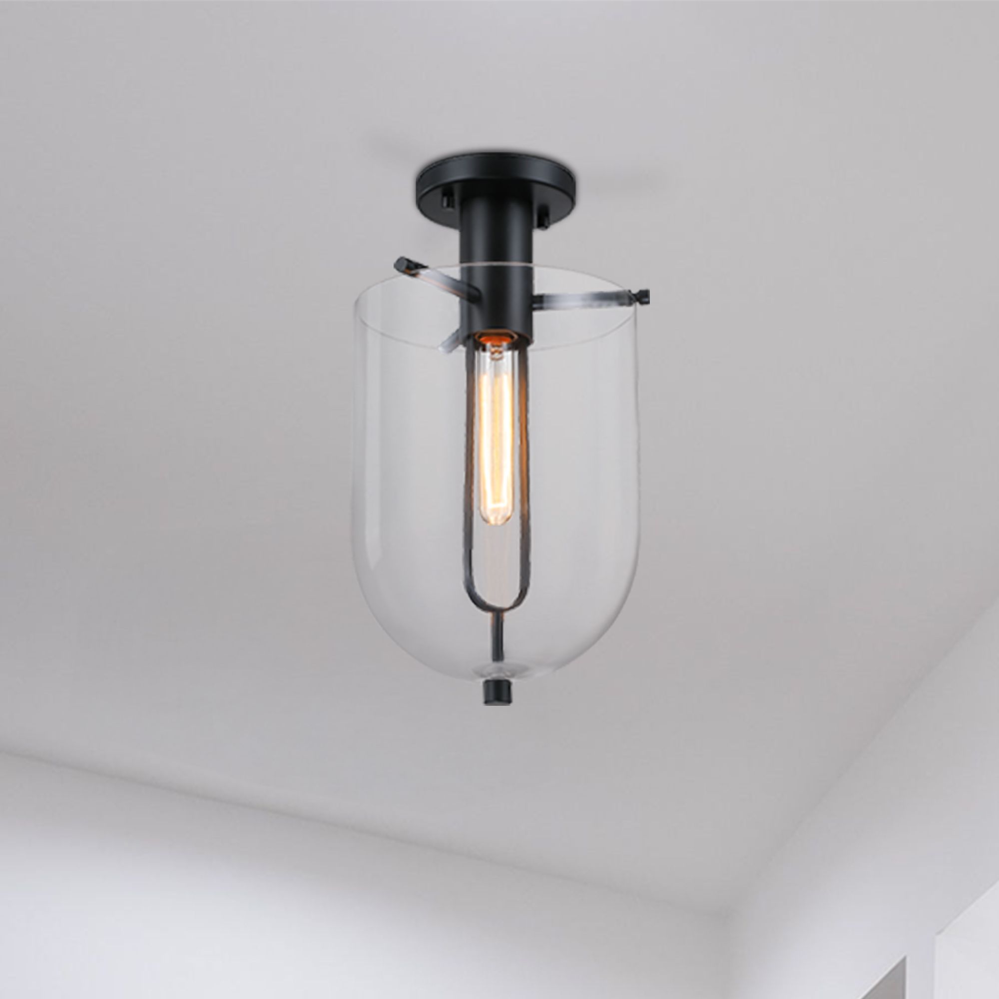 Ele 7.25 in. 1-Light Matte Black Modern Semi Flush Mount Light