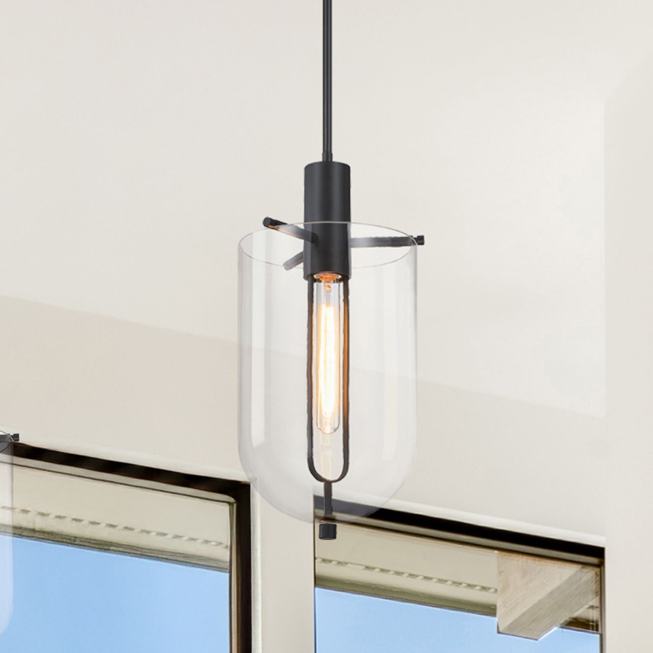Astra 60 Watt 1-Light Matte Black Down Pendant Light with Glass Shade
