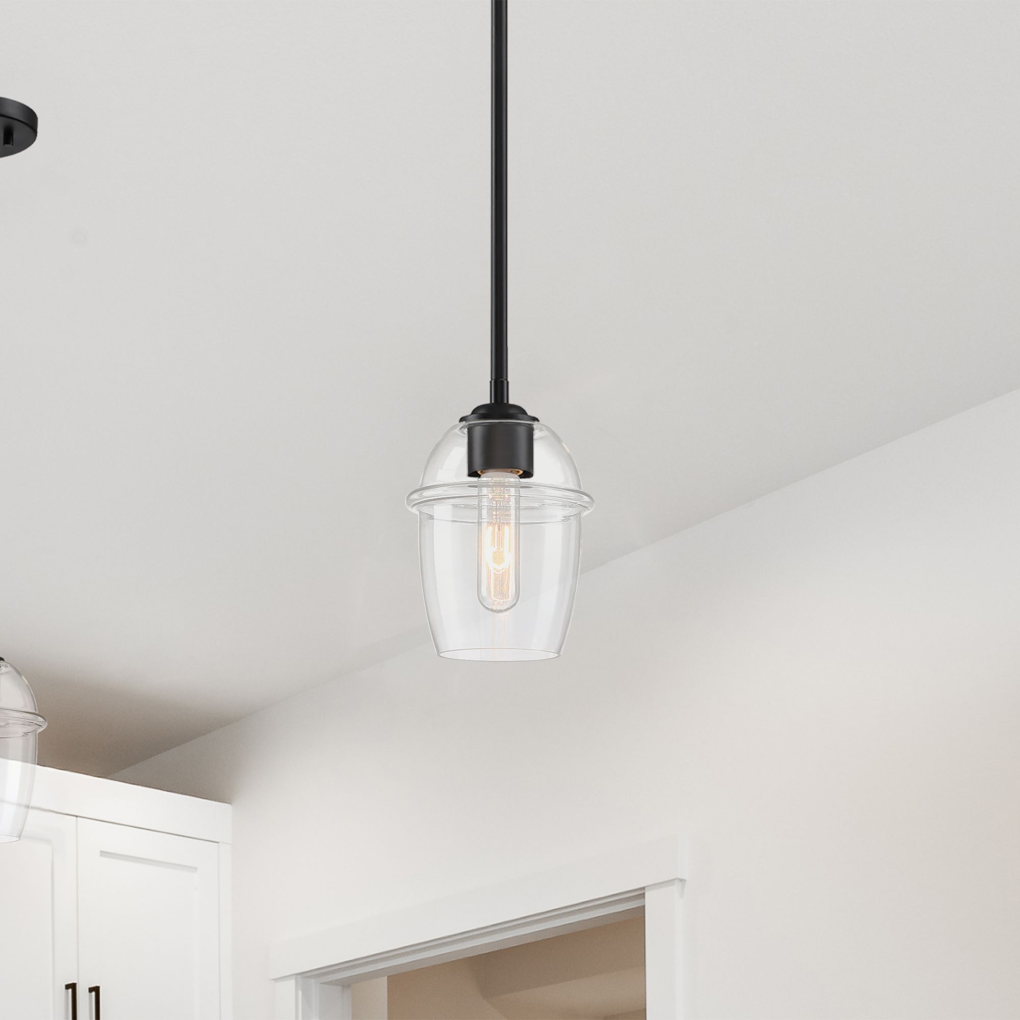 Skylar 60Watt 1-Light 10"Matte Black Pendant Light with Glass Shade