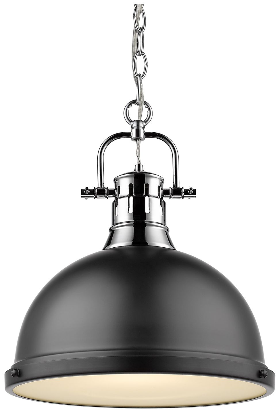 Duncan 14" Wide Chrome 1-Light Pendant With Matte Black Shade