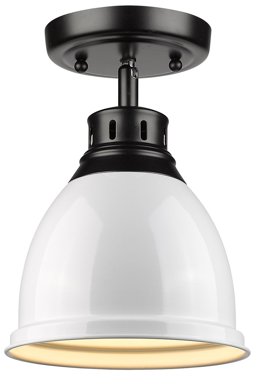 Duncan 8 7/8" Wide Matte Black 1-Light Flush Mount With White Shade