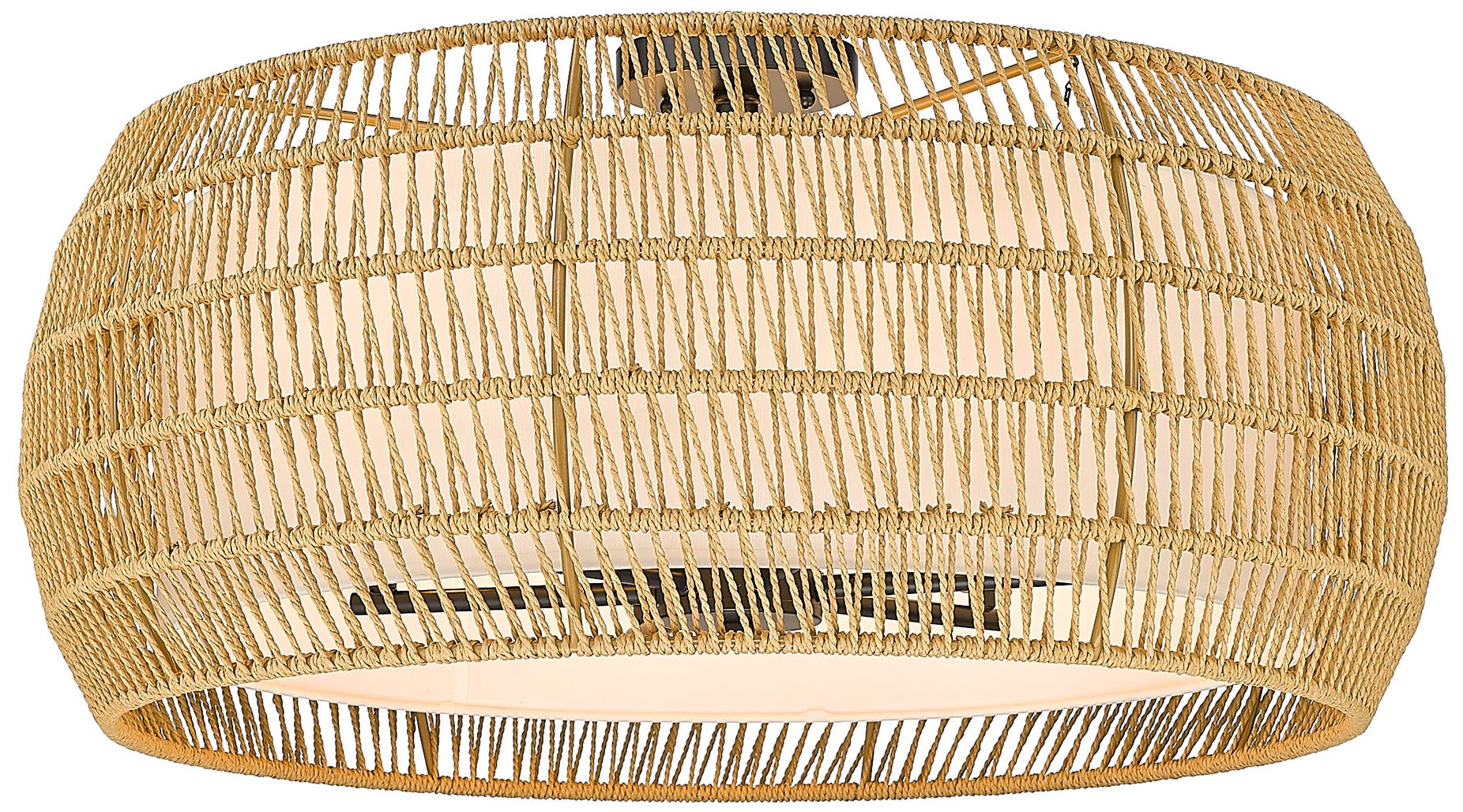 Everly 27 1/8" Wide Matte Black 6-Light Semi-Flush With Natural Rattan