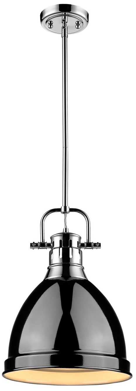 Duncan 1-Light Pendant with Rod in Chrome with Black