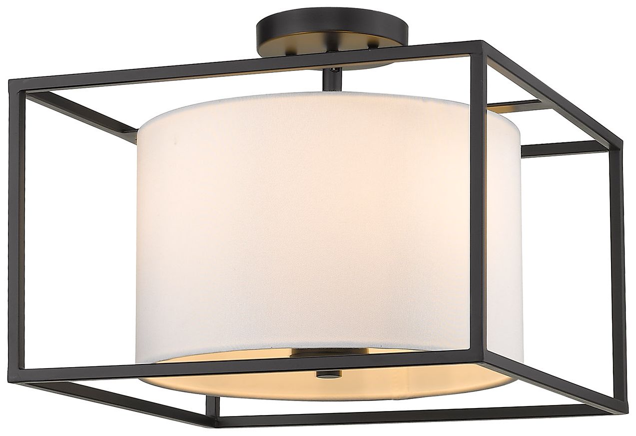Manhattan 14 1/2" Matte Black 3-Light Semi-Flush With Modern White Sha
