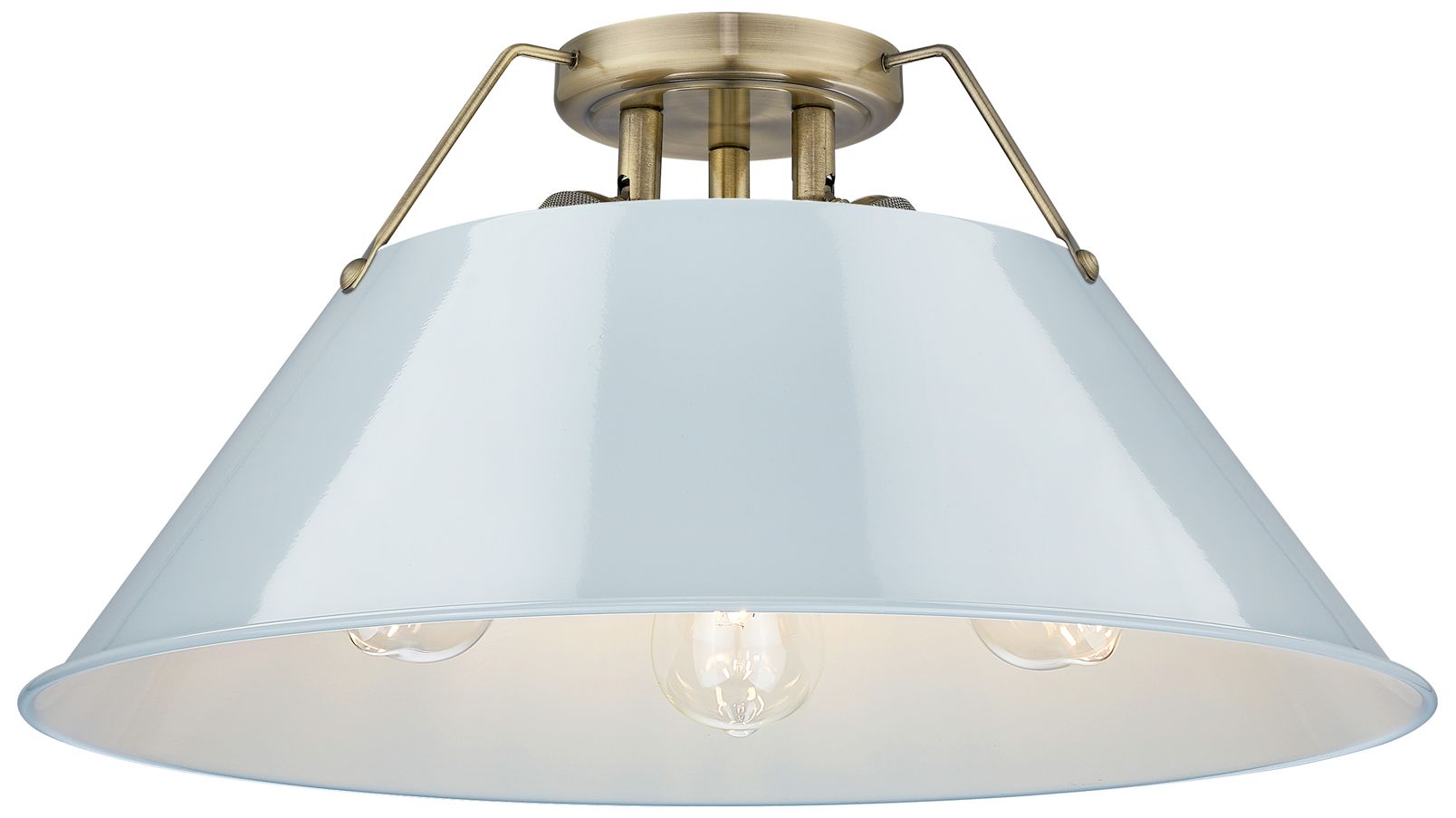 Orwell 18 3/4" Wide 3-Light Flush Mount in Aged Brass with Dusky Blue