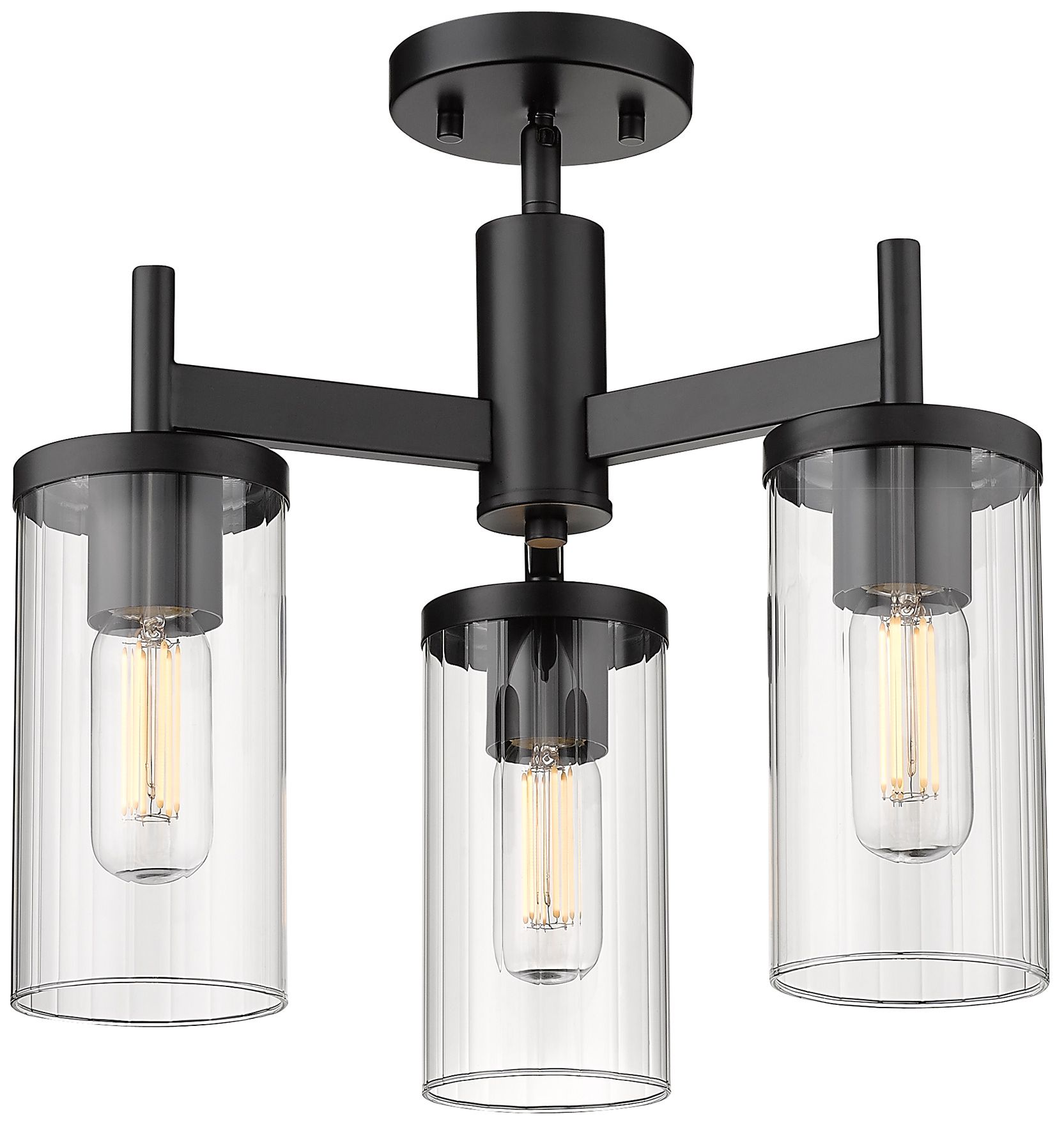 Winslett 16 1/2" Matte Black 3-Light Semi-Flush With Ribbed Clear Glas