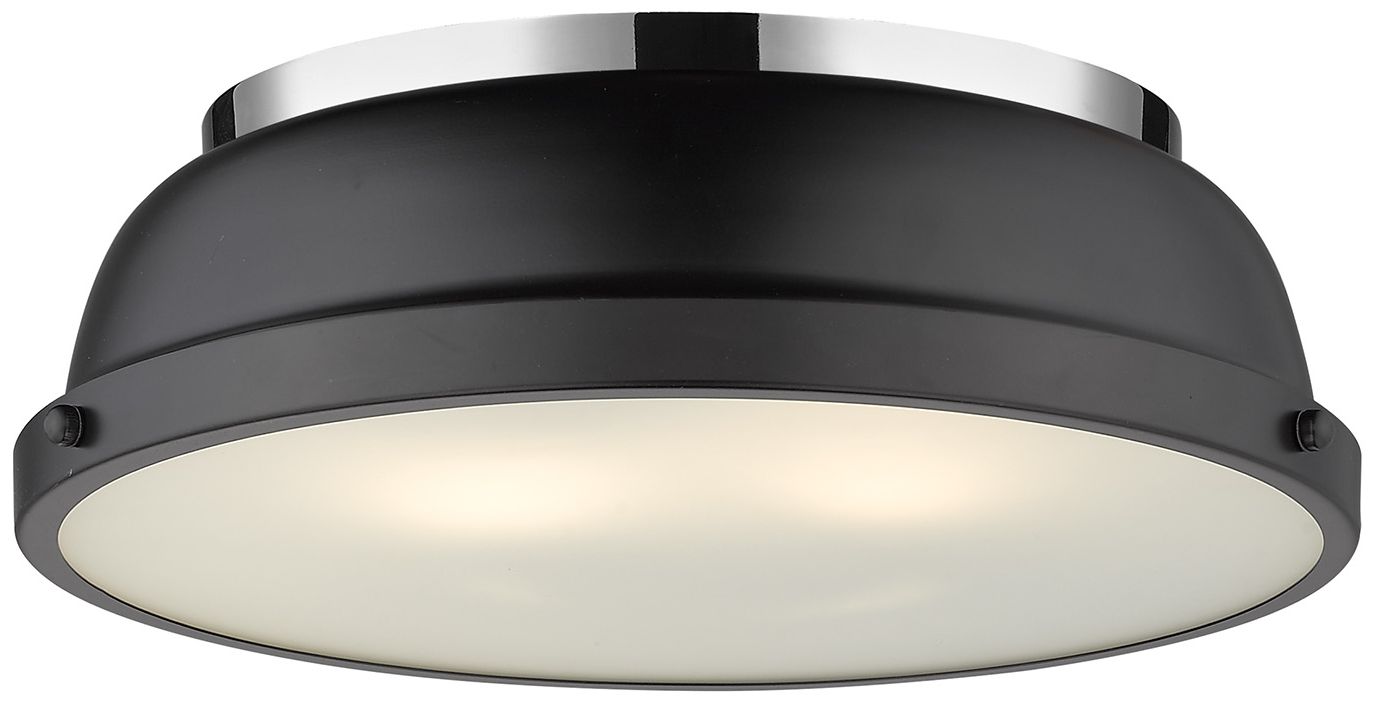 Duncan 14" Wide Chrome 2-Light Flush Mount With Matte Black Shade