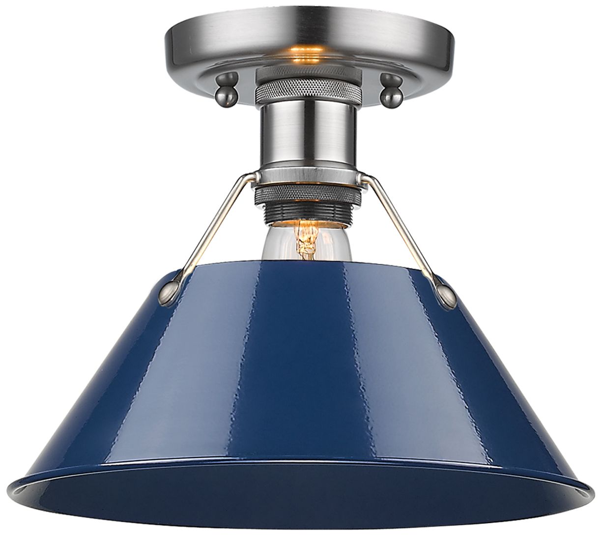 Orwell 10" Wide 1-Light Flush Mount in Pewter with Navy Blue