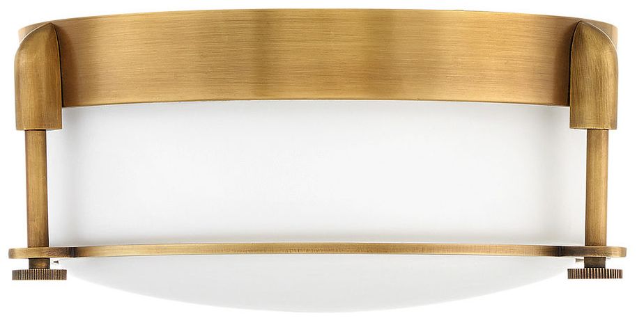 Hinkley Colbin 12 1/2" Wide Brass and White Glass Flush Ceiling Light