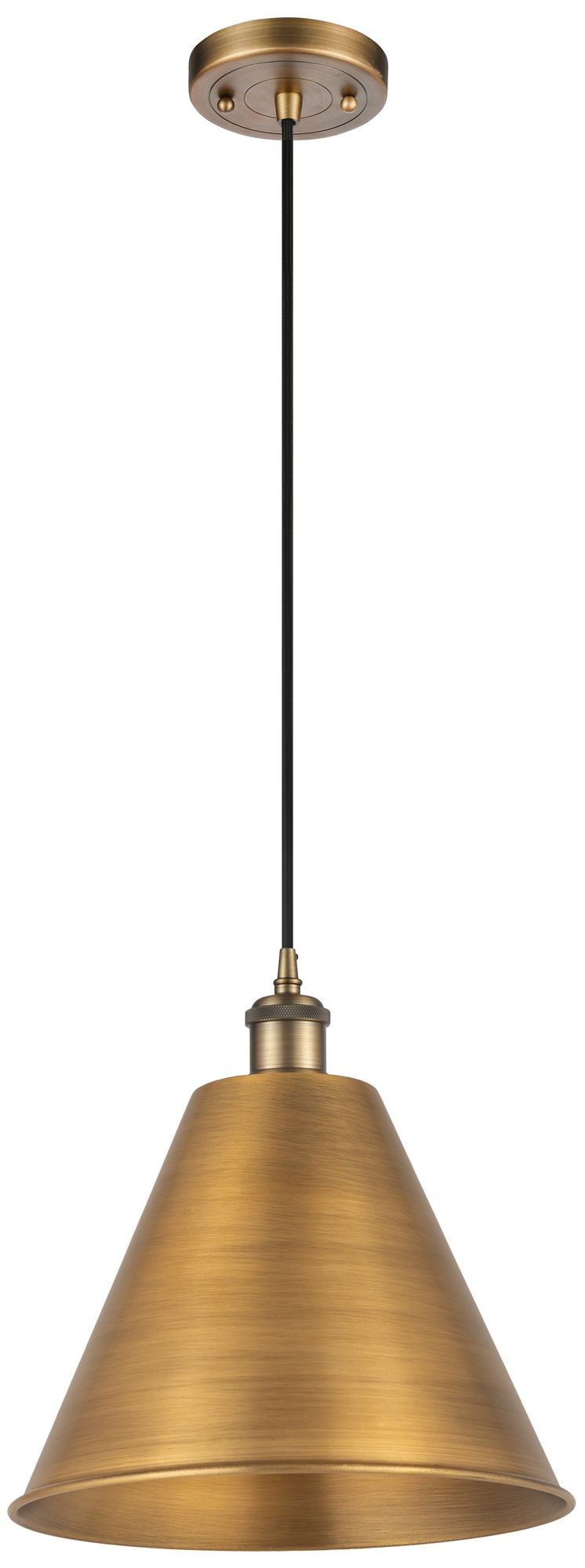 Ballston Cone 12"W Brushed Brass Corded LED Mini Pendant w/ 12" B
