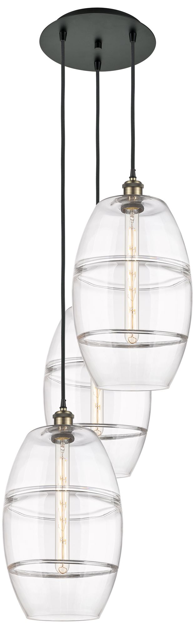 Ballston Vaz 16.5"W 3-Light Black Brass Corded Multi Pendant w/ Clear