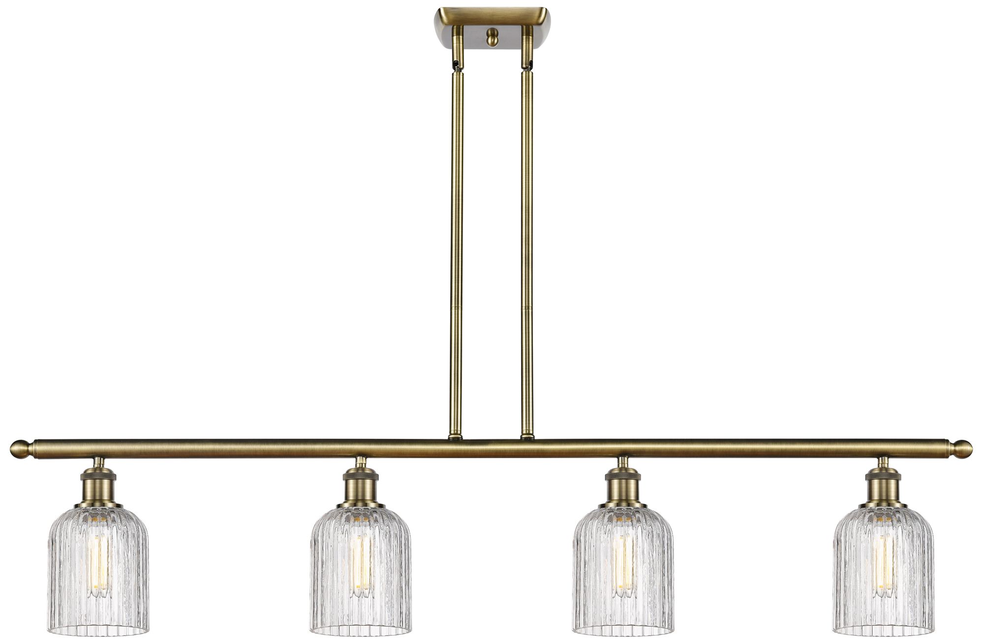 Bridal Veil 48"W 4-Light Antique Brass Stem Island Light w/ Clear Shad