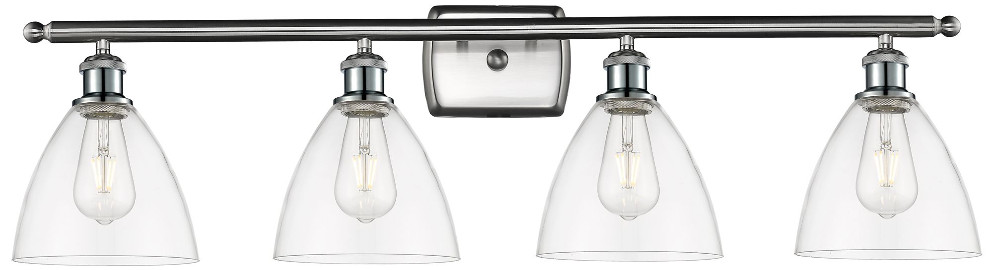 Bristol Glass 4 Light 38" Bath Light - Brushed Satin Nickel - Clear Sh