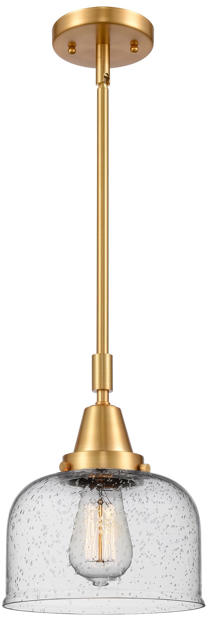Caden Bell 8" Wide Satin Gold Stem Hung Mini Pendant w/ Seedy Shade