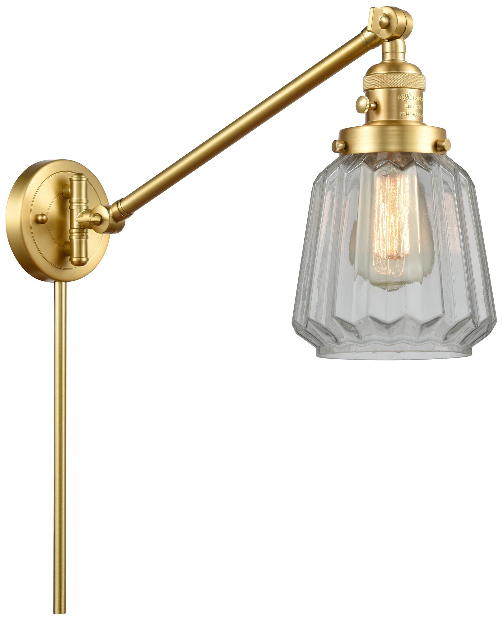 Chatham 25" High Satin Gold Swing Arm w/ Clear Shade
