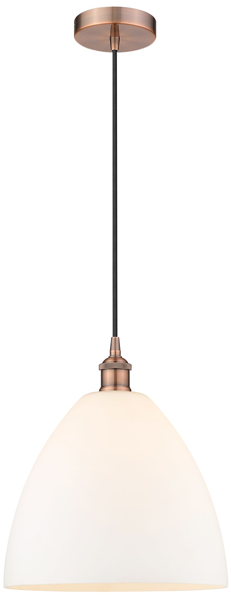 Edison Dome 12" Antique Copper Cord Hung Mini Pendant w/ Matte White S