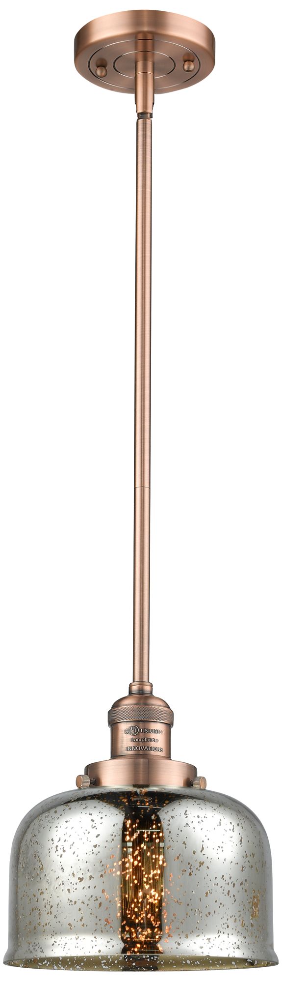 Franklin Restoration Bell 8" Copper Stemmed Mini Pendant w/ Mercury Sh