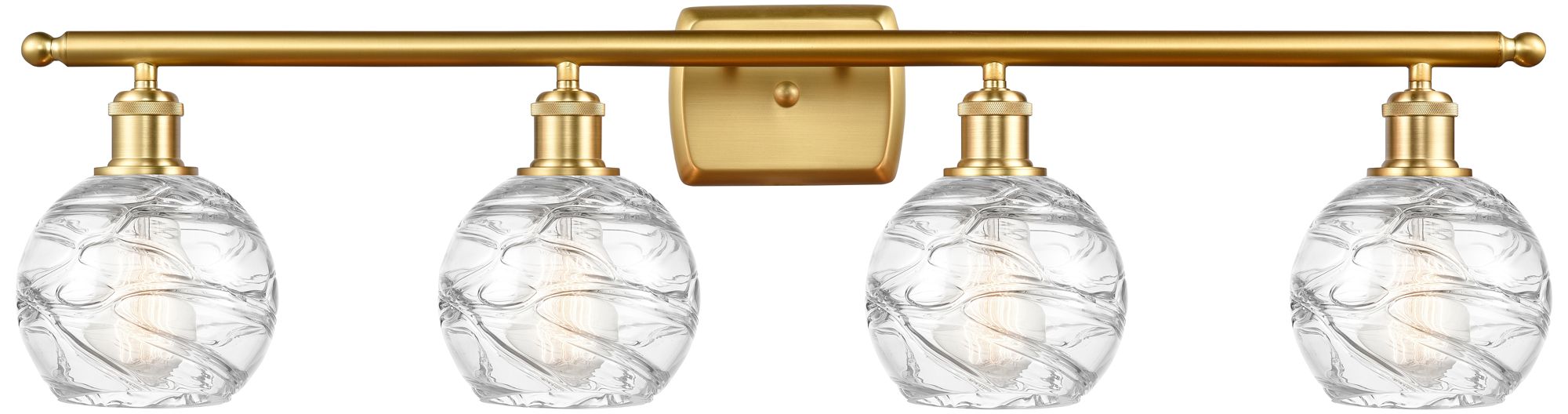 Athens 36" 4-Light Satin Gold Bath Light w/ Clear Deco Swirl Shade