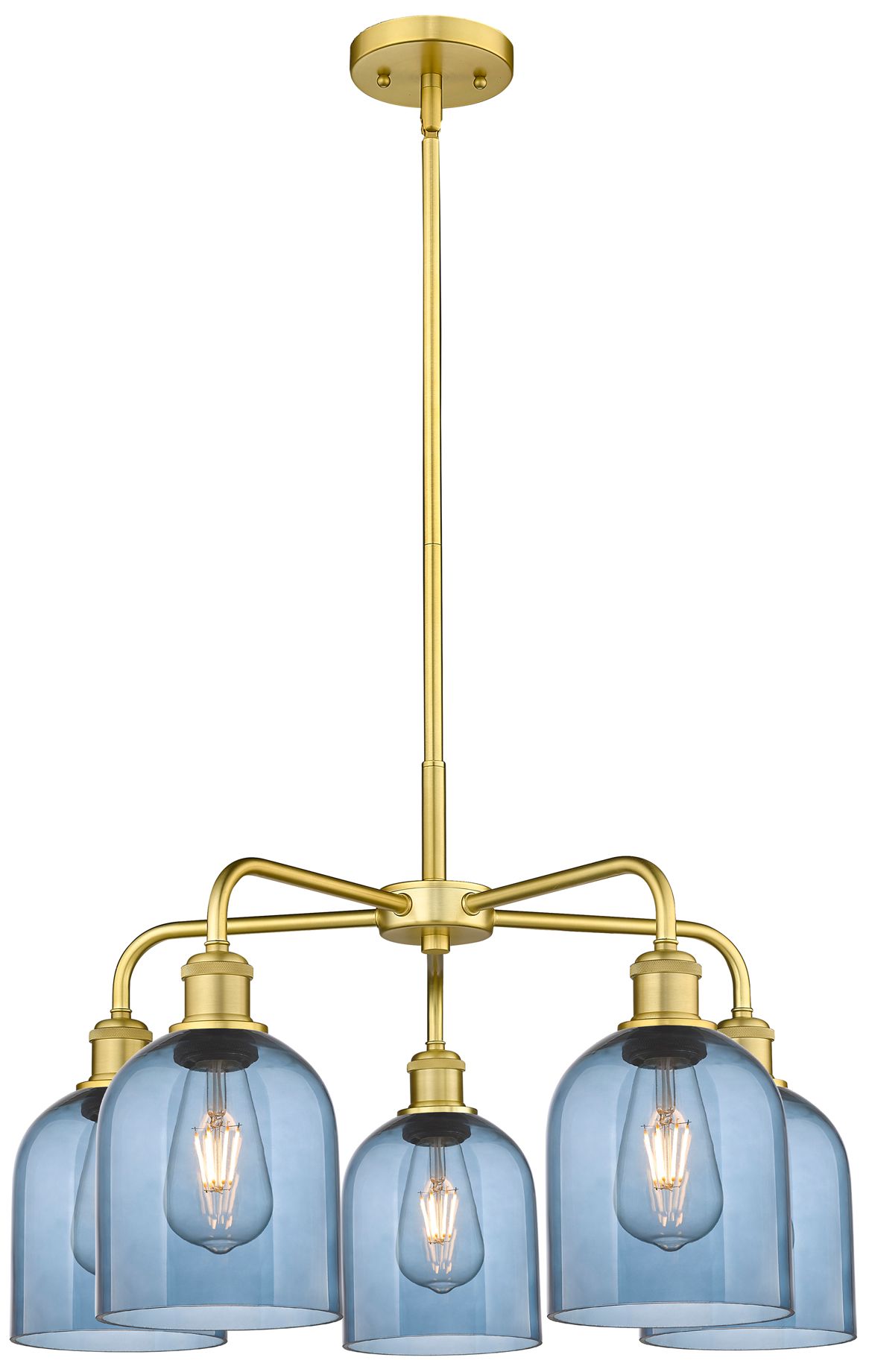 Ballston Bella 23.5"W 5-Light Satin Gold Stem Chandelier w/ Blue Shade