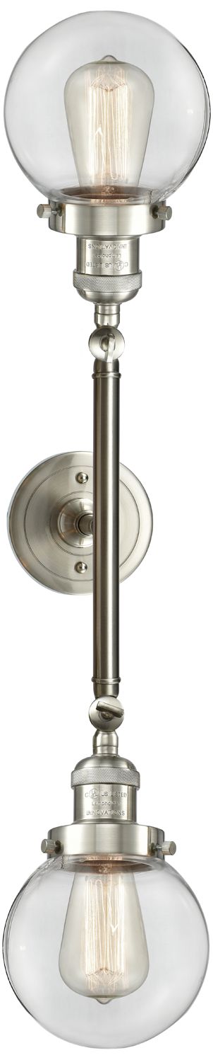 Beacon 2 Light 6" LED Bath Light - Brushed Satin Nickel - Clear Shade