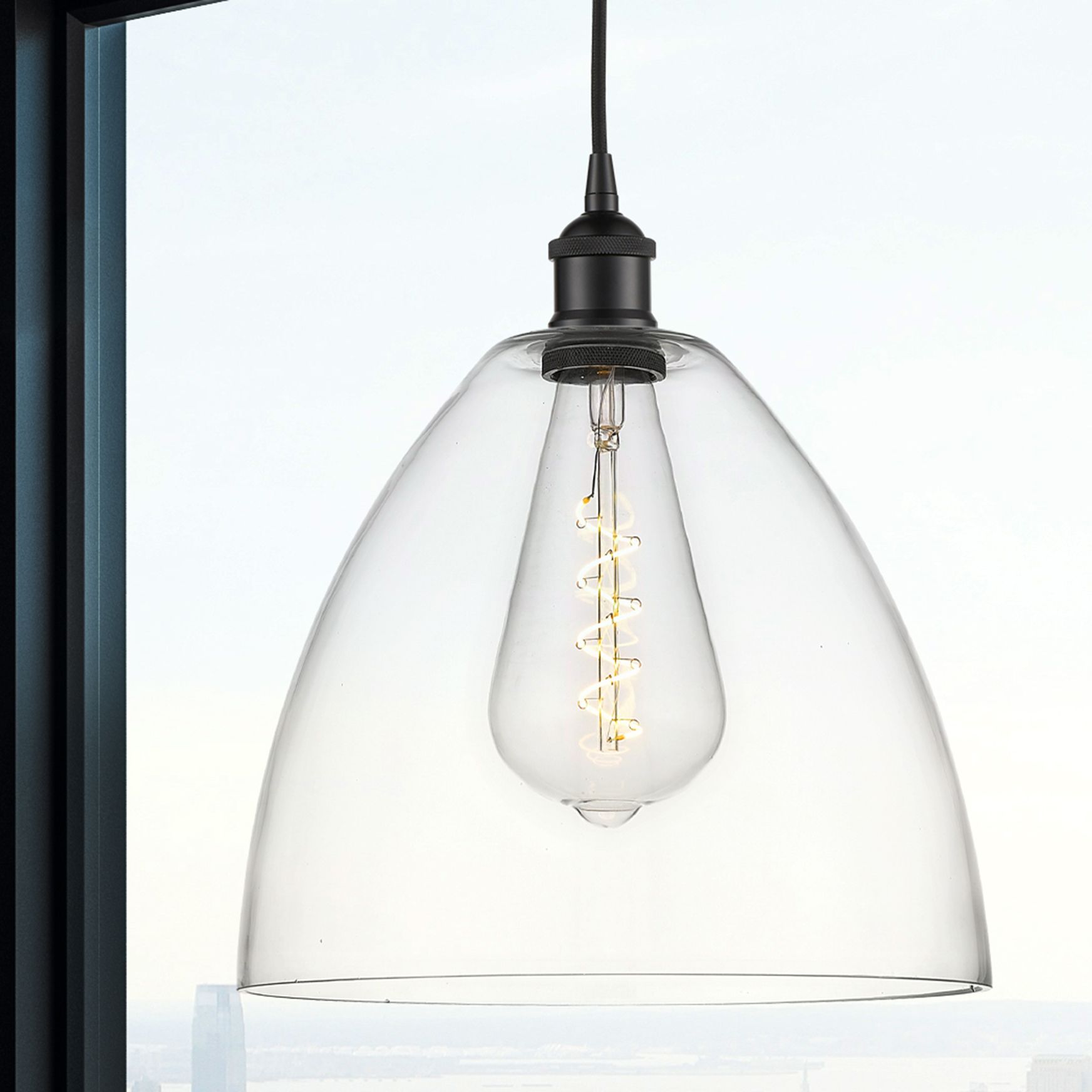 Edison Dome 12" Matte Black Cord Hung Mini Pendant w/ Clear Shade