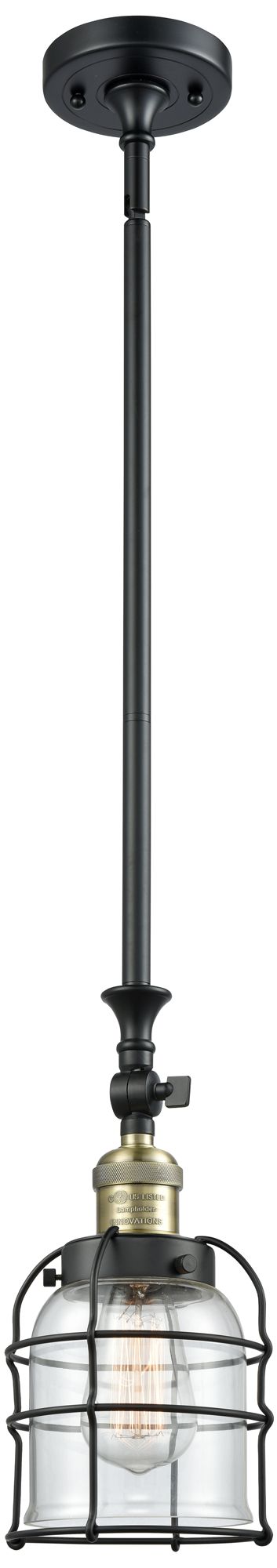 Franklin Bell Cage 6"W Black Brass Stem Hung Mini Pendant w/ Clear Sha