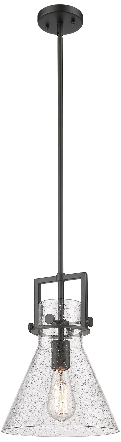 Newton Cone 10" Wide Stem Hung Matte Black Pendant With Seedy Shade