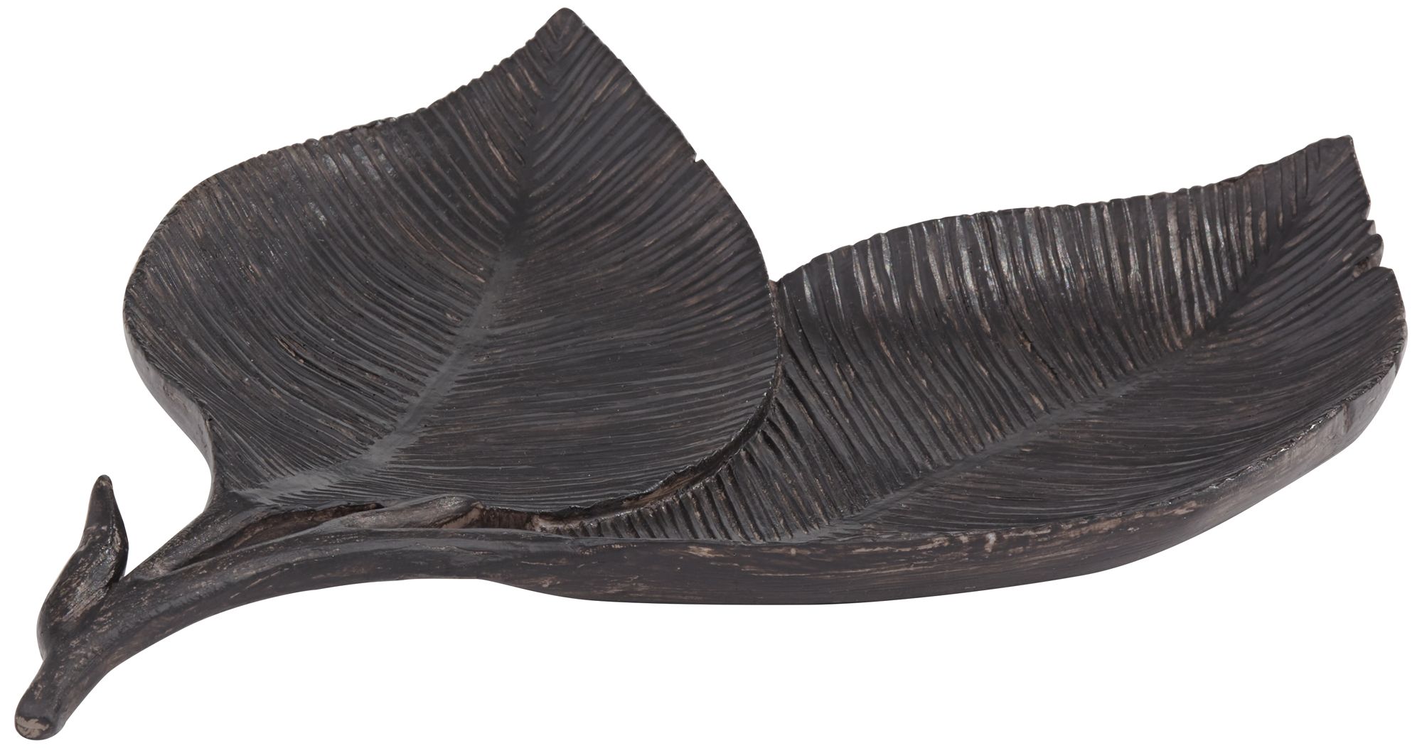 Kenny 16 3/4" Wide Shiny Gold Decorative Leaf Tray