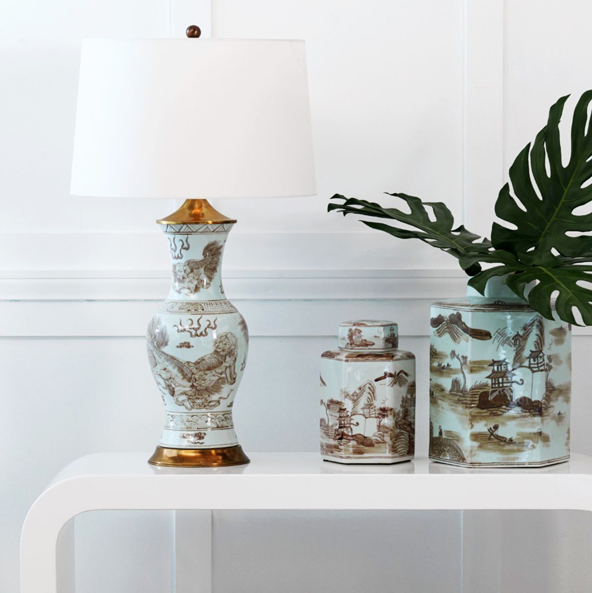 Port 68 Chow Foo Dogs 34" Brown and White Porcelain Vase Table Lamp