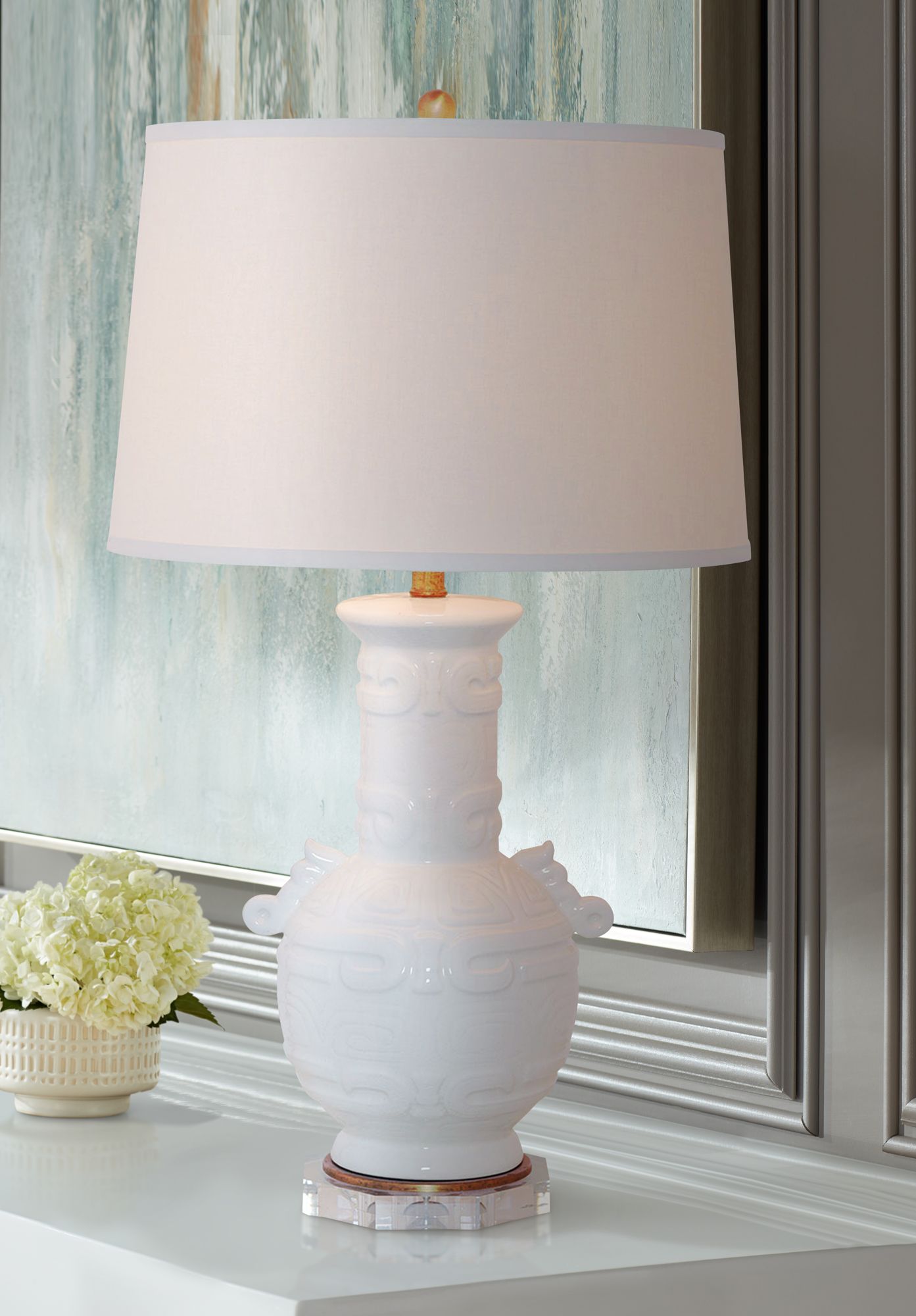 Port 68 Franklin 32" Glossy Cream White Porcelain Table Lamp
