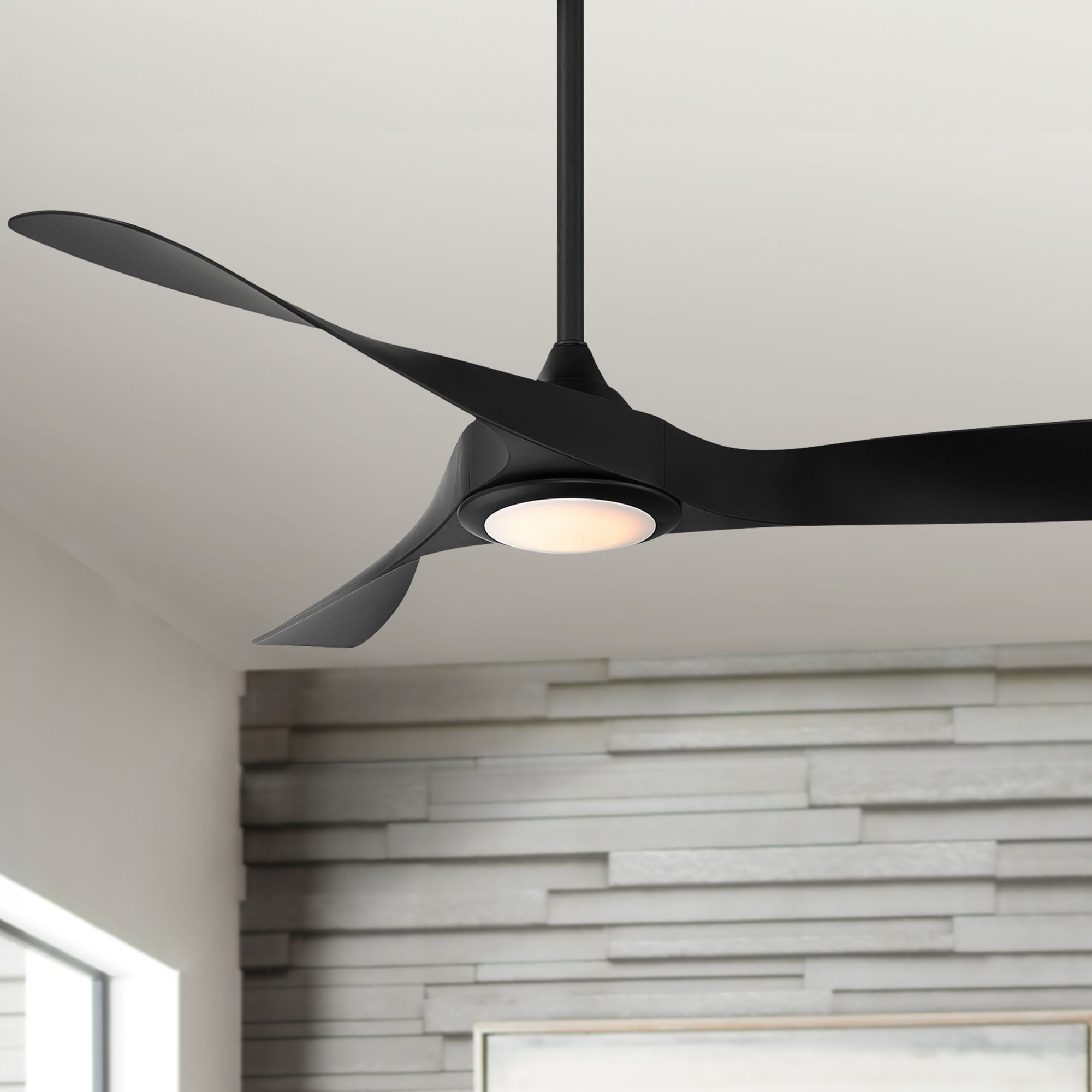 54" WAC Swirl Matte Black LED Light Wet Rated Smart Ceiling Fan