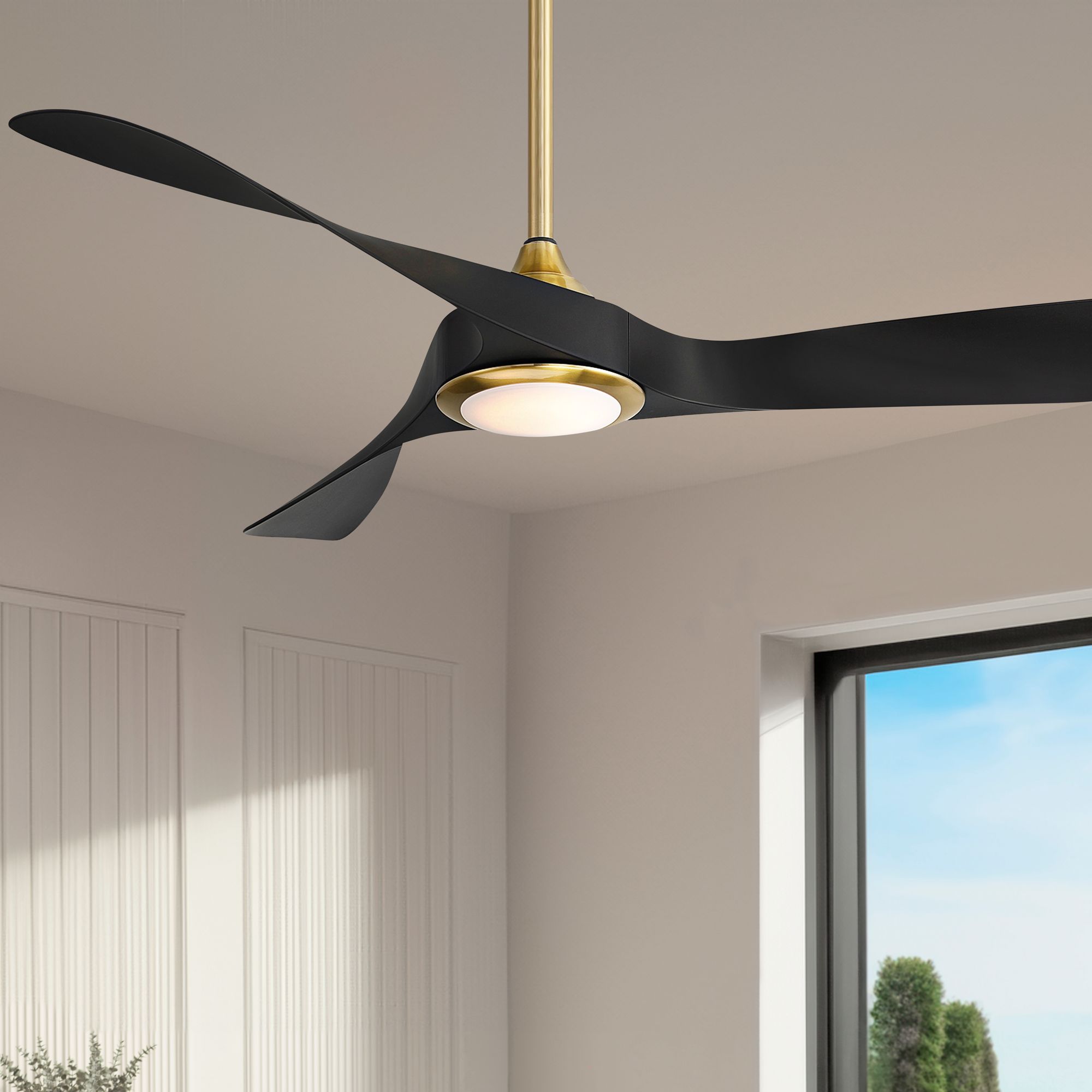 54" WAC Swirl Soft Brass and Black LED Wet Rated Smart Ceiling Fan