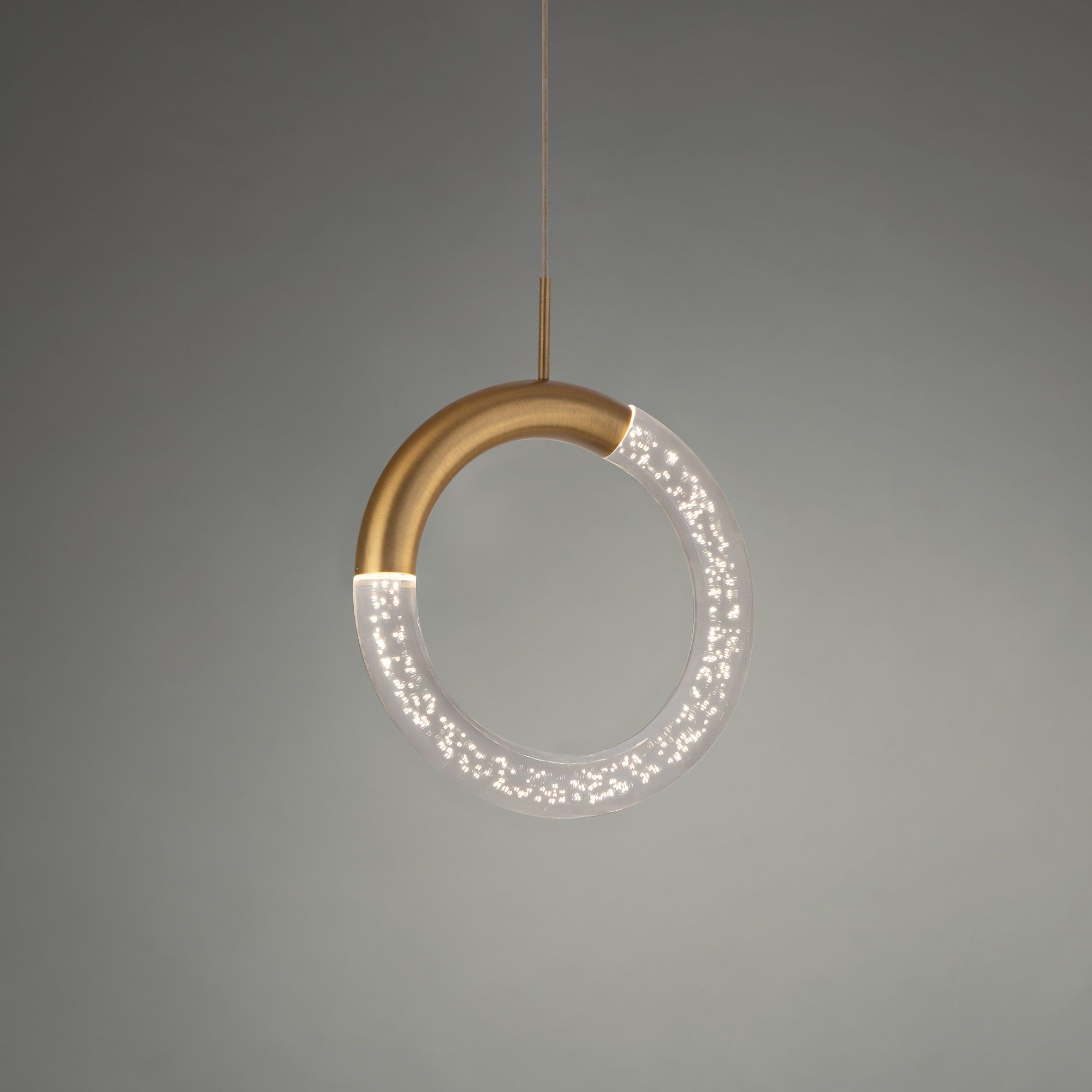 Hoopla 13"H x 13"W 1-Light Pendant in Aged Brass