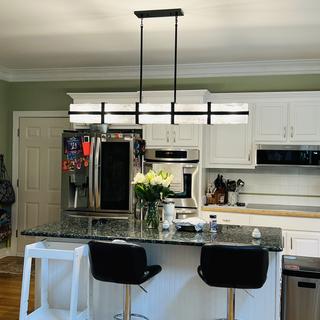 - Modern rectangular linear chandelier from the Cloud Break collection by Minka Lavery.