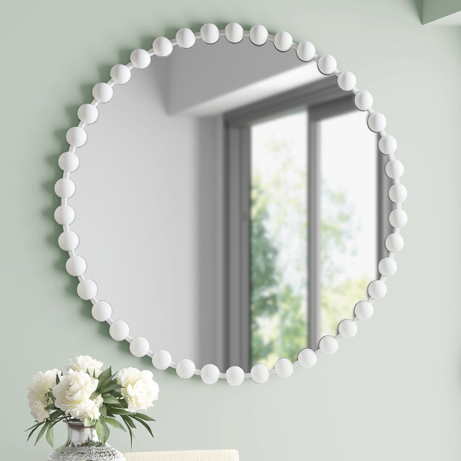 Marlowe Matte White 36" Beaded Round Wall Mirror