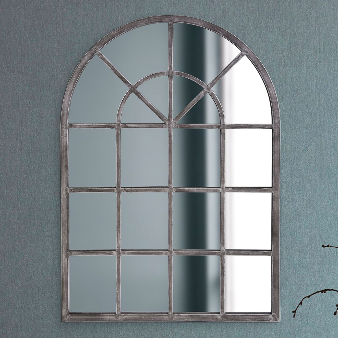 Fenetre Antique Silver 29" x 41" Arched Wall Mirror