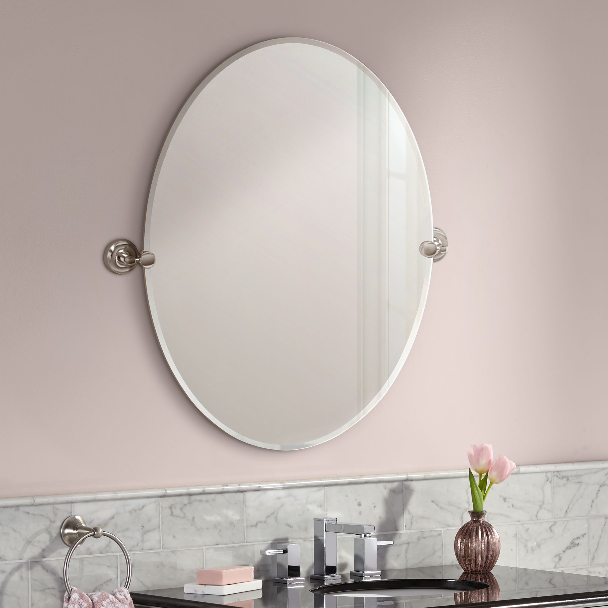 Gatco Elevate Satin Nickel 24" x 26 1/2" Oval Wall Mirror