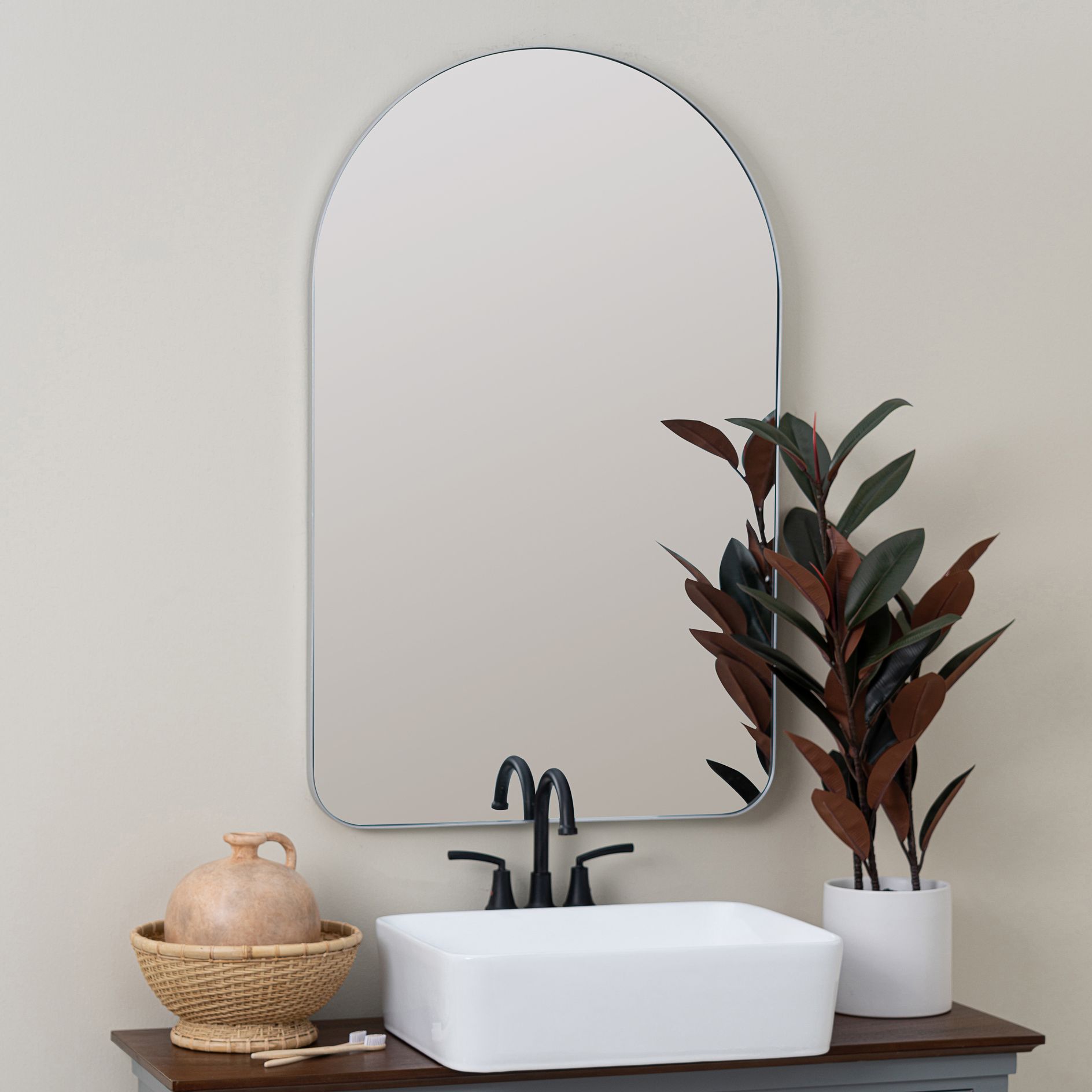 Gerrard Glossy Silver Metal 24" x 38" Arch Top Wall Mirror