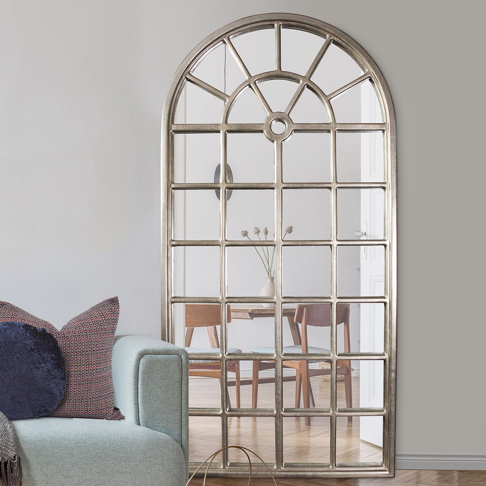 Natasha Antique Silver Leaf 26" x 42" Arched Wall Mirror